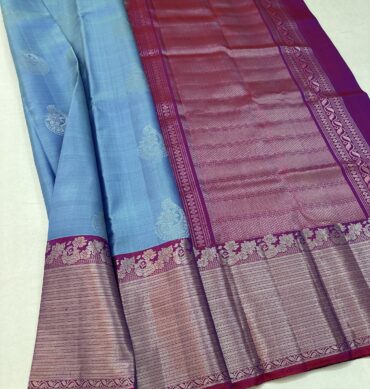 Dark Magenta with Blue Color Turning Border Soft Silk Saree